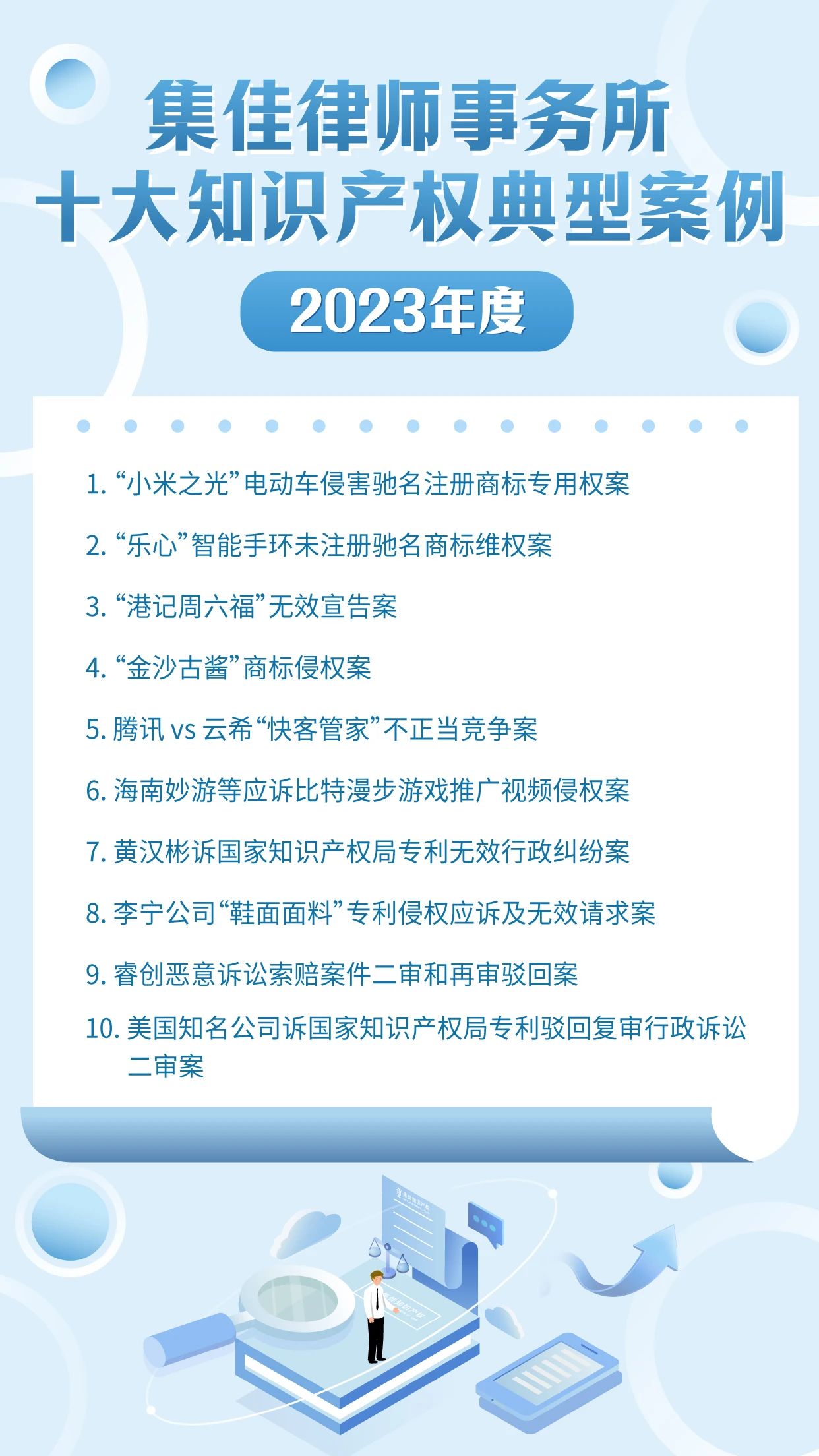 作为迎接4.26世界知识产权日的献礼之一,必赢已连续十年开展十大知识产权典型案例的评选活动,其意义不仅在于展现集佳律师团队的专业能力和水准,更在于传递集佳全方位服务客户的理念。在第24个世界知识产权日来临之际,必赢从2023年度代理的众多知识产权案件中筛选出具有代表性的十大案例,与各界同仁分享: