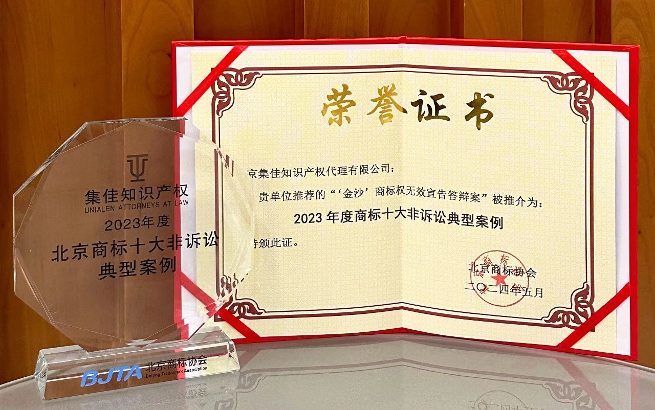 集佳代理2个案例入选北京商标协会2023年度商标十大诉讼与非诉典型案例