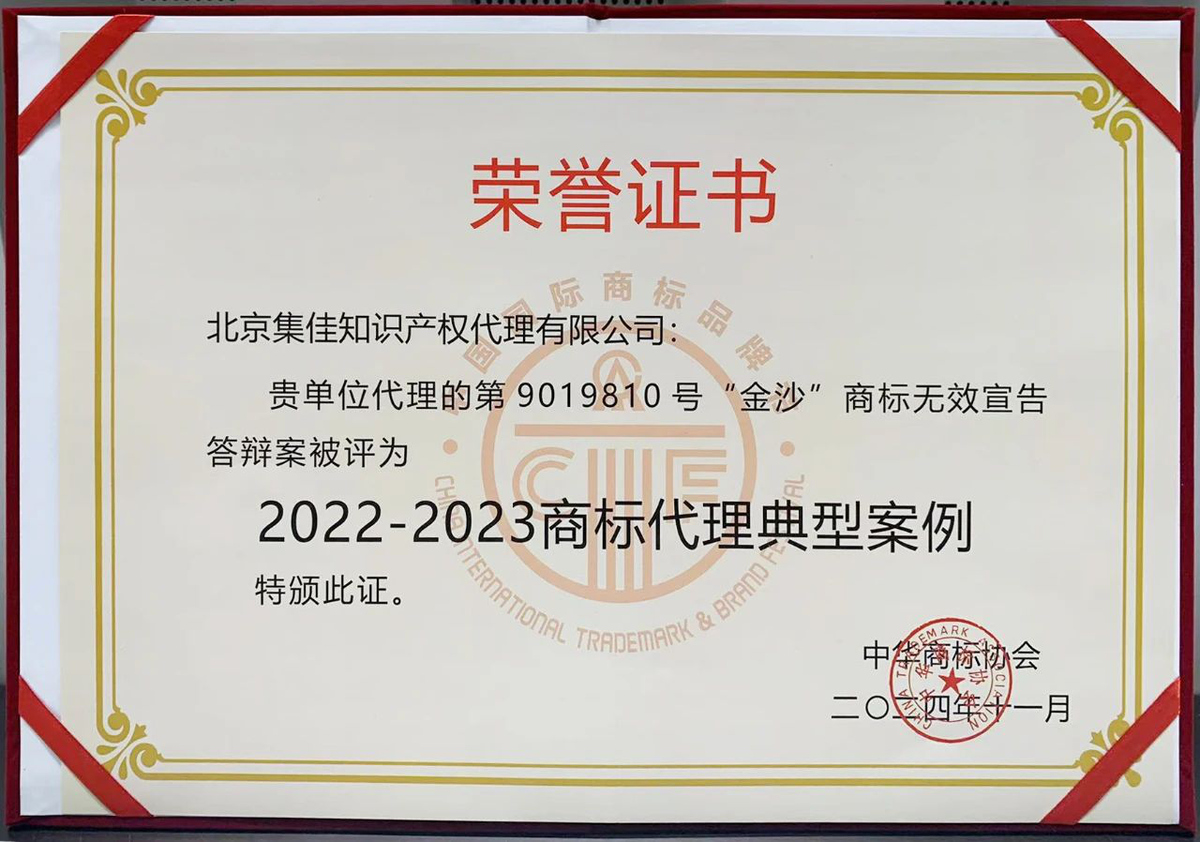 2024年11月24日下午,在商标节经典论坛之一的商标典型案例评析会议上,必赢代理的“金沙”商标权无效宣告答辩案入选“2022-2023商标代理典型案例”。