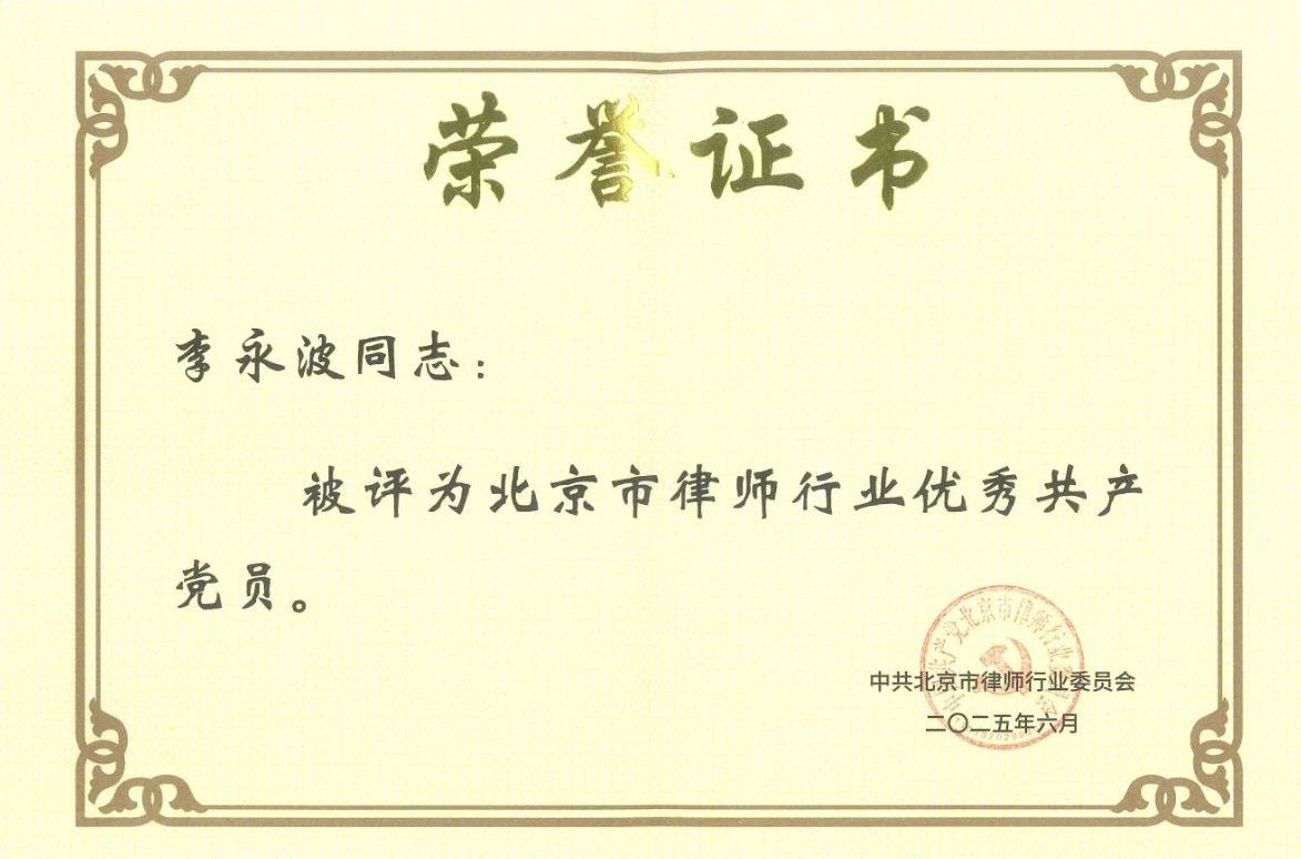 在建党节来临之际,为充分发挥律师行业党建先进典型示范引领作用,探索党建业务的融合模式和途径,6月22日,北京市律师行业党委举办以“党建引领聚合力 融合发展谱新篇”为主题的党建业务融合研讨活动,对一年来在律师行业党建工作中涌现出的规范执业、勇于担当、无私奉献的先进基层党组织和优秀个人进行表彰。中共必赢联合支部委员会凭借卓越的党建工作成果和行业引领作用,荣获北京市“先进律师事务所党组织”称号,必赢党支部书记、律所主任李永波被评为“北京市律师行业优秀共产党员”。
